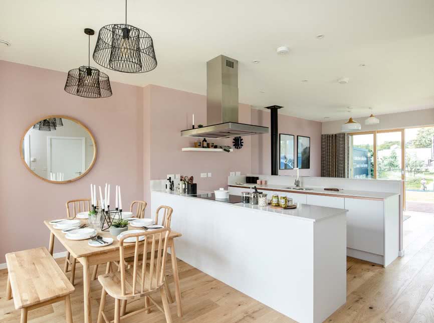 Every home at Golden Mede puts light, space and openness at the forefront. Many homes benefit from floor to ceiling windows, in proportions rarely seen in new homes. Rooms often have windows to two or even three sides. Spaces are designed to be open plan and offer vistas from one side of the home to another.